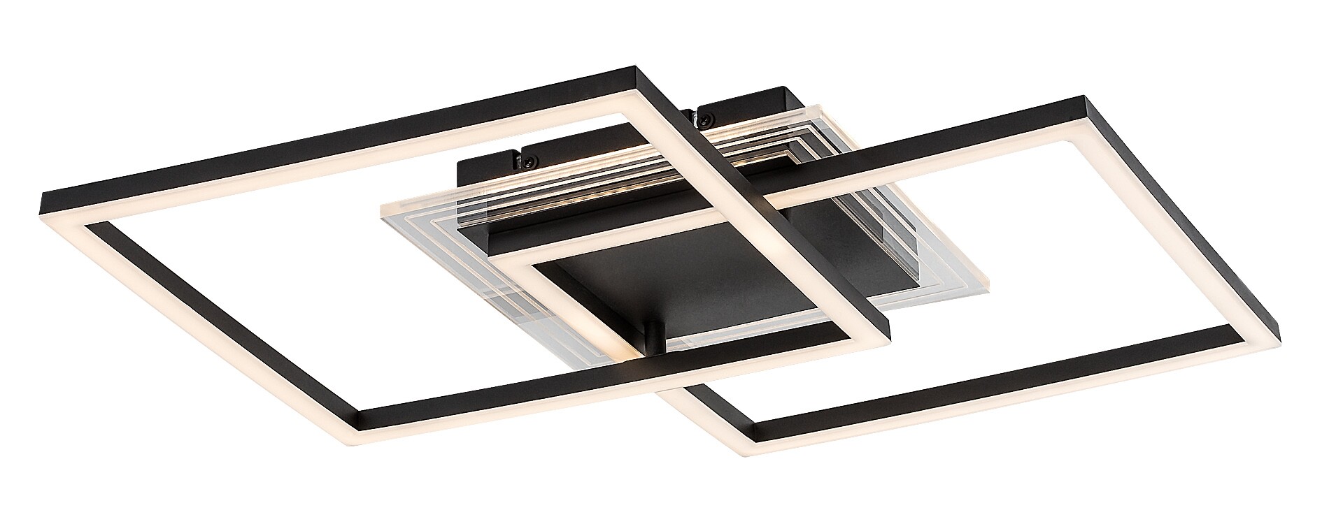 Таванната лампа Rabalux Ottavia е препоръчителна за тези, които харесват креативно проектирани модерни лампи. Това LED осветително тяло е изработено от метал в елегантна черно-бяла цветова комбинация. Корпусът е черен и е изработен от метал, докато абажурът е направен от бял акрил. Лампата е съставена от два пресичащи се квадратни елемента и може да се фиксира към тавана с помощта на черна квадратна декоративна основа. Разполага с вграден LED източник на светлина, който излъчва топла бяла светлина, създавайки уютна и интимна атмосфера. Този модел е идеален за всекидневната, трапезарията или спалнята. Благодарение на високата си яркост и дизайн, лампата е подходяща за осветяване на по-големи помещения. Поради интегрираната LED технология, таванната лампа се отличава с енергийно ефективна работа и дълъг експлоатационен живот.